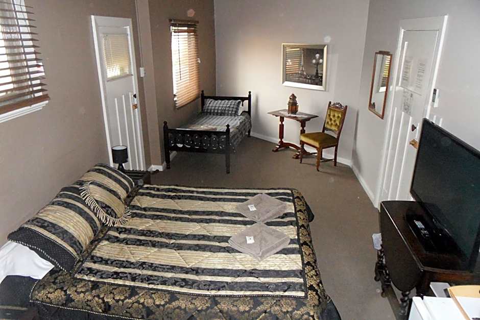 It features an private bathroom, tea/coffee making facilities, mini refrigerator, and LCD TV. There is a table and chairs. The room includes a double bed and single bed.